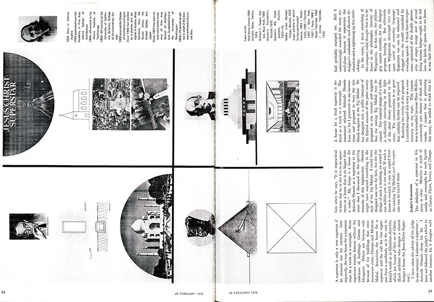 Already in 1976, through the magazine Japan Architects, Arata Isozaki launched the “House for a superstar” competition. More than three hundred international architects designed projects for a star of their choice. Hans Hollein proposes mausoleums for Jesus Christ, Cleopatra, Lenin and a remake of the Taj Mahal for Aristotle Onassis. Gian Piero Frassinelli designs a capsule to protect the star of stars, Michelangelo’s David. The other proposals feature the residences of Brigitte Bardot, Raquel Welch and David Bowie.