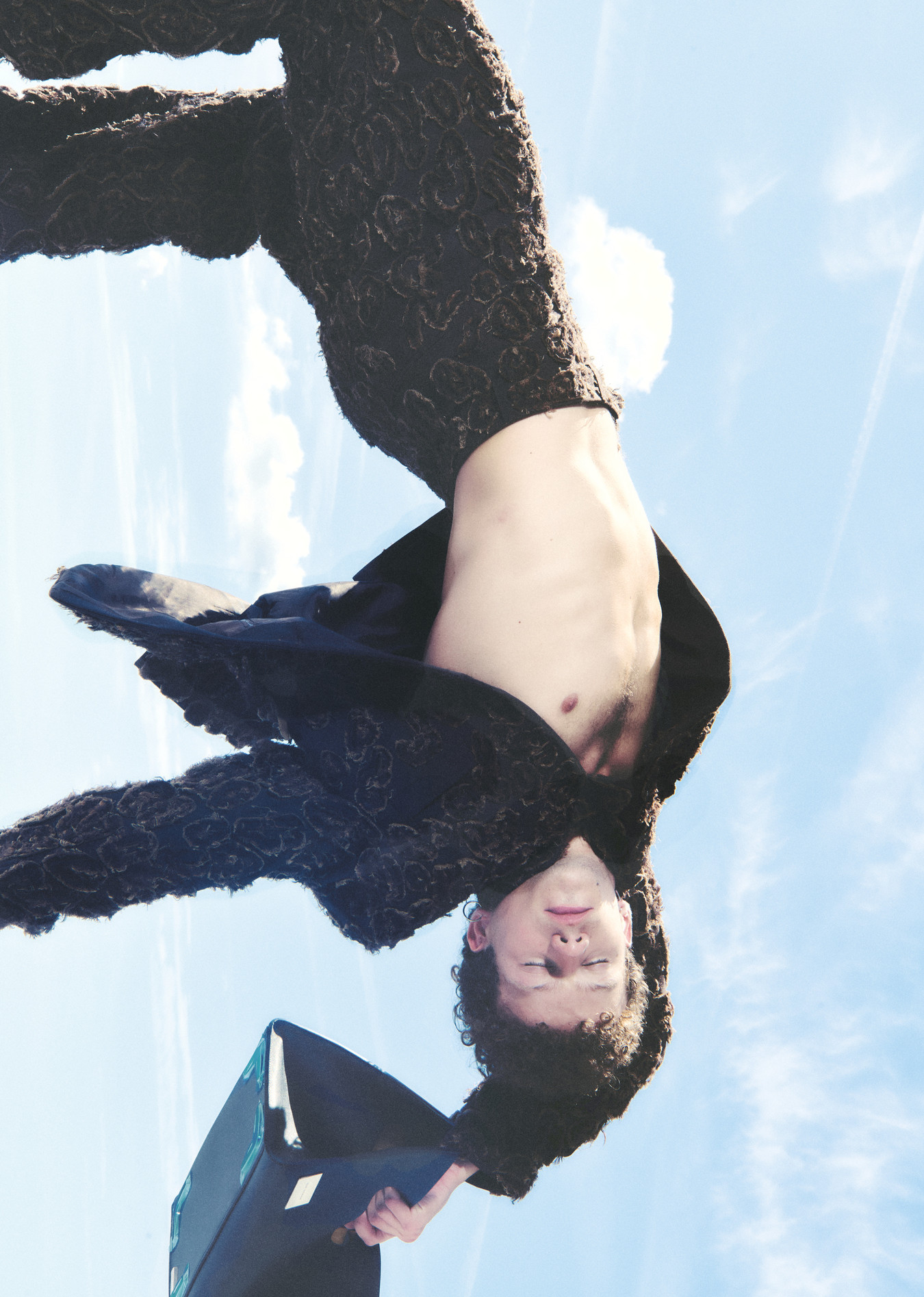 The very essence of the collection draws its inspiration from the clothing associated with practices of hazing. It continues the designer’s reflection on the role of the uniform, initiated in his previous collection, Yessir. What meaning does it convey? Is there a way to make the uniform your own, to regain power over your role in society? Ad Fundum, meaning literally “to the bottom” in Latin, is the contrast between the skullcap (the emblematic headgear of students), the strict three-piece suit (worn for various formal ceremonies) and a sweatshirt from the streetwear wardrobe that reflects the reality of these young people’s clothing.