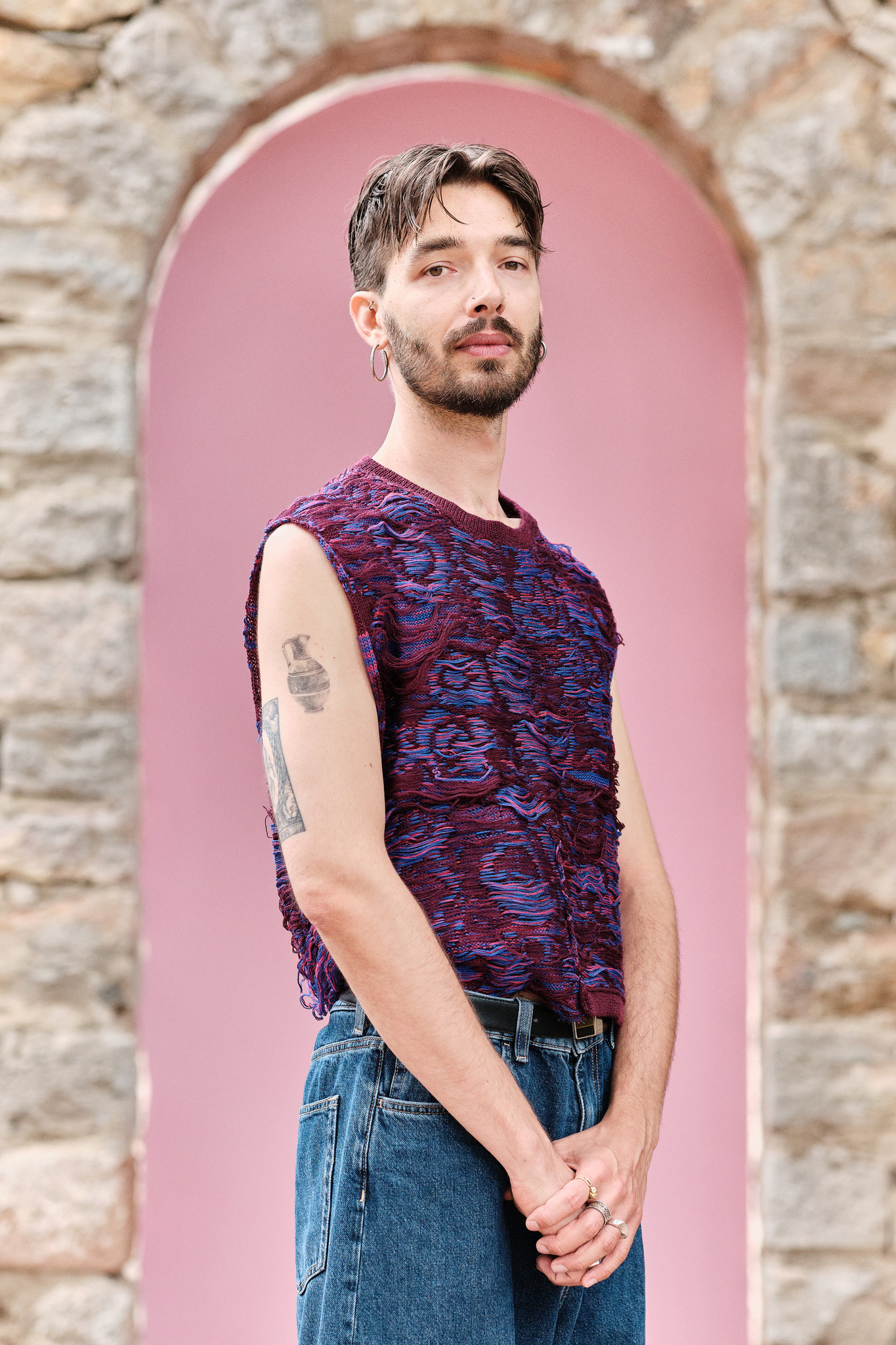 In the villages of Puglia, from where Luca Rizzo originates, large amphoras are omnipresent, whether they stand at the entrance of houses or serve as pantries inside. Carriers of stories, they symbolize life, the warmth of the home, and sharing. Over time, these receptacles have lost their primary function to become mere decorative objects. With Mirage Miroir, the artist seeks to transcend their purely ornamental function, inviting us to consider them as central figures in an intimate narrative. Drawing from his childhood memories and inspired by his Italian origins, he uses design as a tool in the service of memory, striving to infuse each piece with a spirit. The amphoras then transform into true creatures: entities in their own right, endowed with their own identity and personality. They come to life and inhabit the space with their presence, creating their own scenography. Made from various materials, ceramics, and textiles, the amphoras now take on the traits of chimerical characters that reveal stories combining mythology and the power of contemporary design. Valuing artisanal craftsmanship and returning to a slow, conscious production far from serial overproduction are the foundational principles of Luca Rizzo’s work. Each piece is unique and restores the value of art to manufactured craftsmanship. The use of some of the oldest techniques, such as ceramics, dialogues with more modern materials like feathers or synthetic textiles, creating a narrative that oscillates between the familiar and the strange.