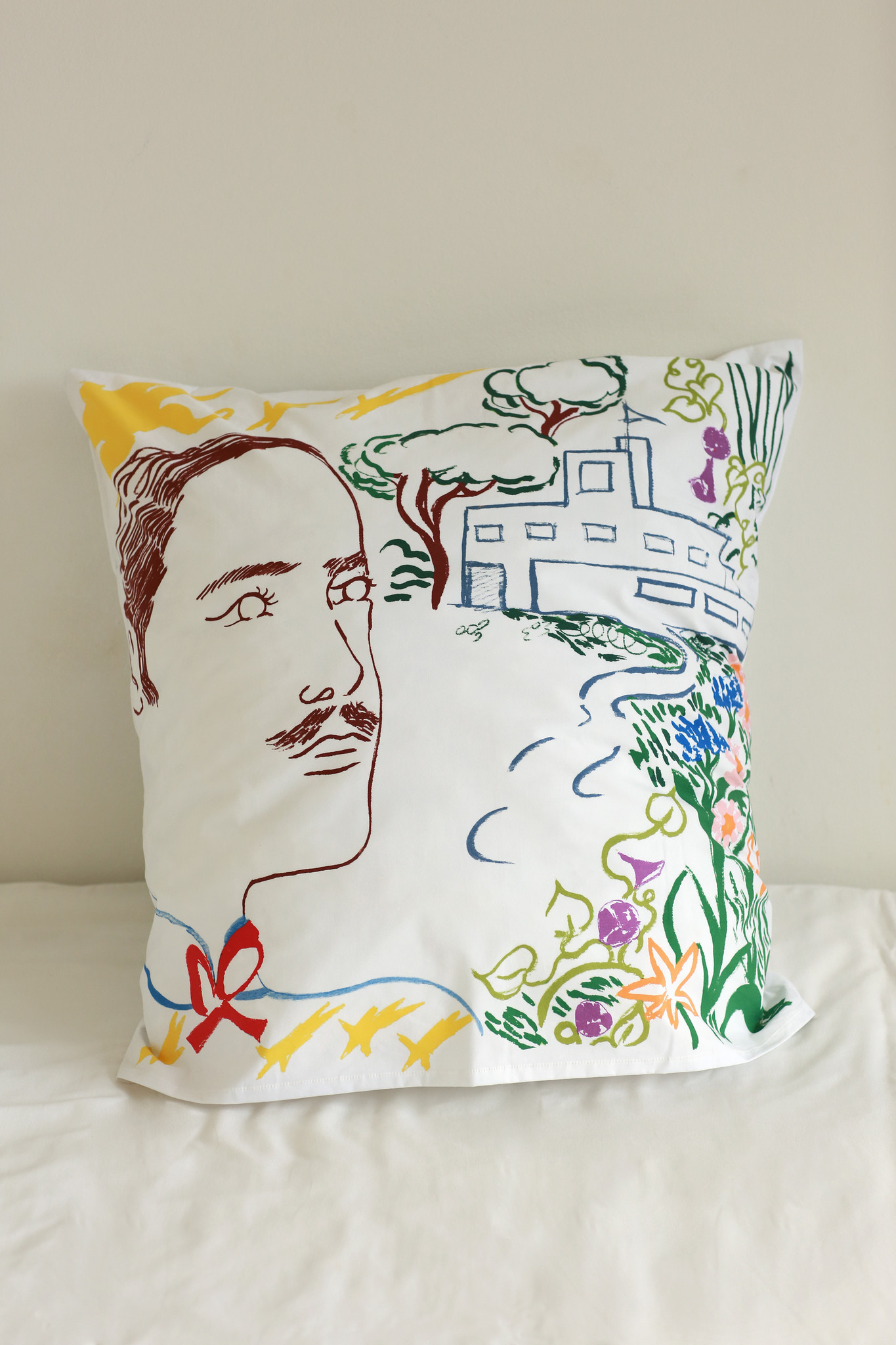 This season, Fragonard’s iconic pillowcases are adorned with a new design by artist Jacques Merle, created exclusively for Villa Noailles. It pays tribute to the legendary couple Charles and Marie-Laure de Noailles, with the poetry that characterises his work: the lines are soft, the faces almost dreamlike.