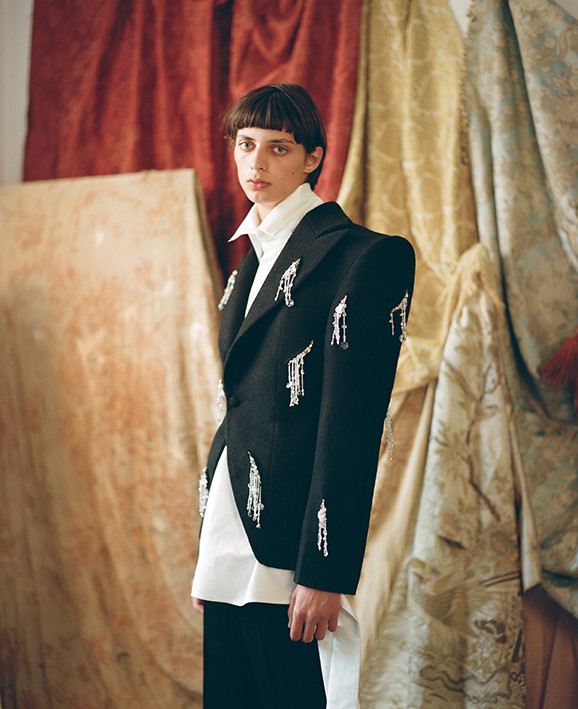 Cette collection aborde la construction d’un personnage, le voyage d’un enfant innocent, dépourvu d’intentions ou de perspectives, qui se retrouve au travers d’un mécanisme d’autodéfense, celui d’une apparence masculine tout en épousant enfin sa féminité.